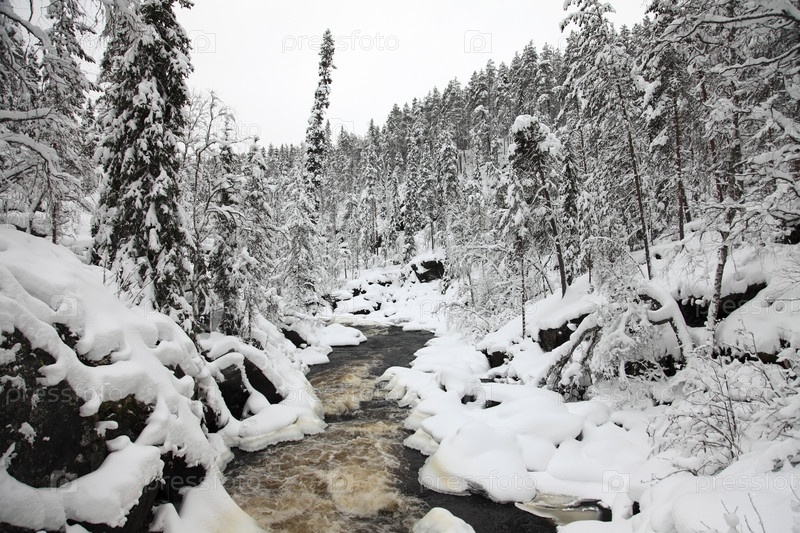 Зимний ландшафт в национальном парке Оуланка. Финляндия