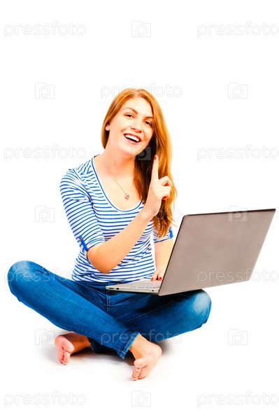 Красивая женщина, сидящая с ноутбуком