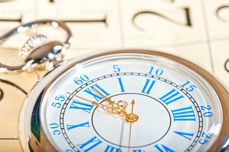 Серебряные часы на календаре