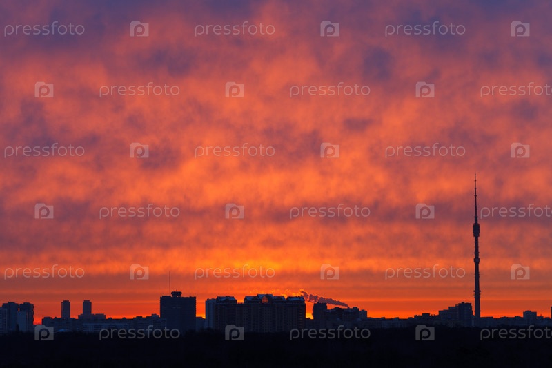 Красные облака над городом весной