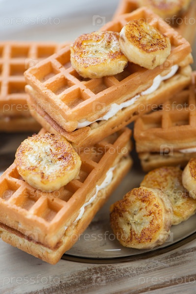 Вафли с обжаренным бананом