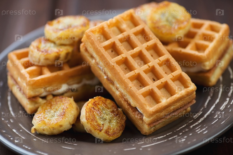 Вафли и жареные бананы