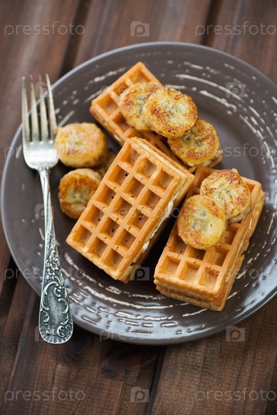 Вафли и жареные бананы