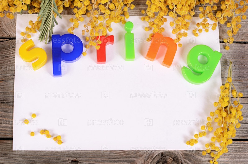 Желтая мимоза на деревянных досках