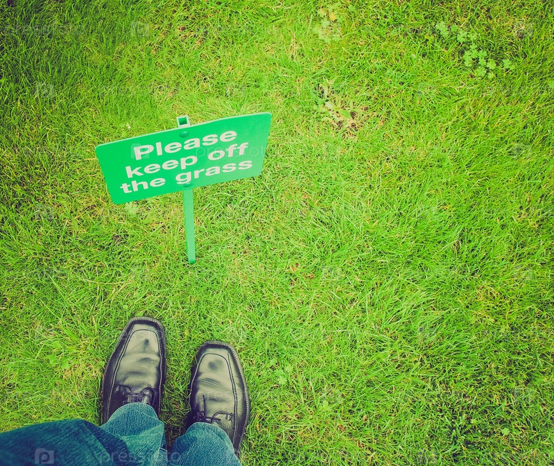 Ноги и знак ПО ТРАВЕ НЕ ХОДИТЬ