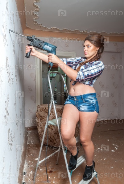 Привлекательная женщина с дрелью