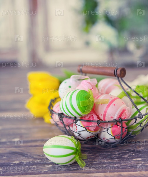 Пасхальные яйца в корзине