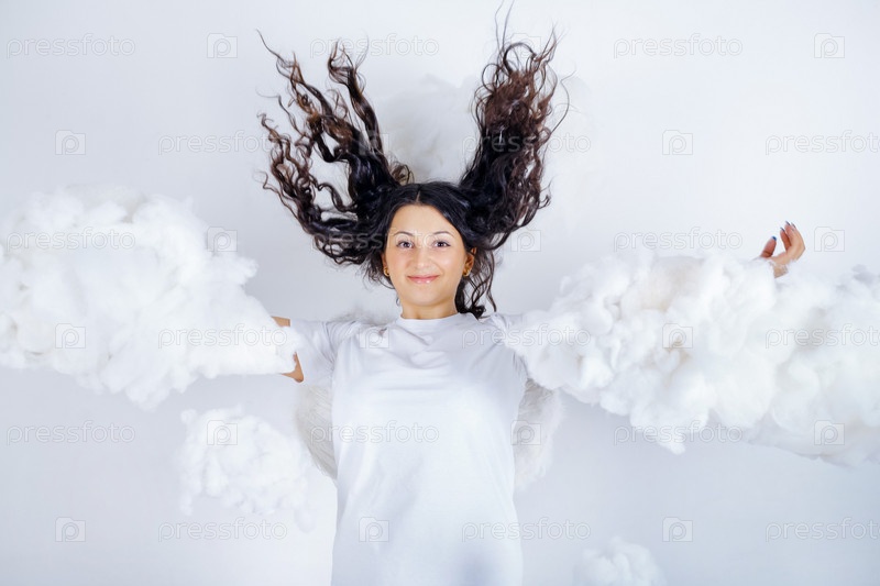 Женщина с крыльями в облаках