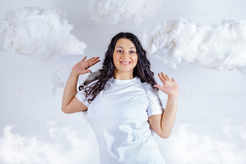 Женщина с крыльями в облаках