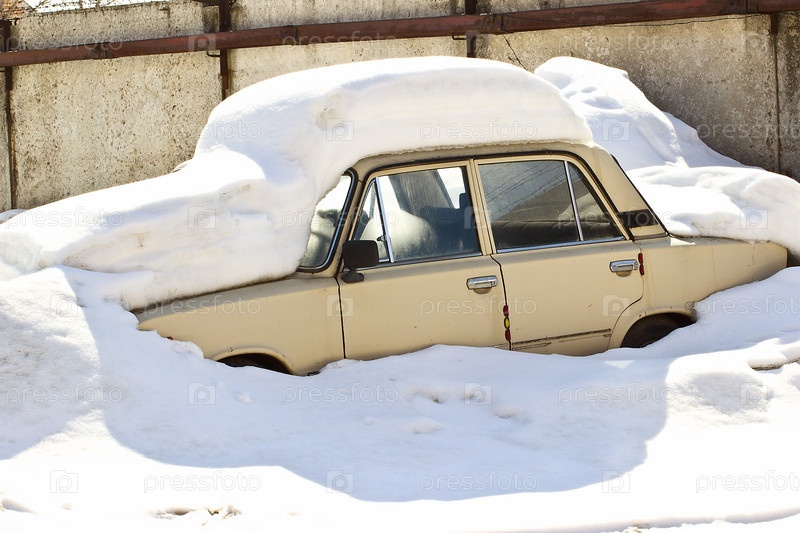 Старый российский автомобиль под снегом