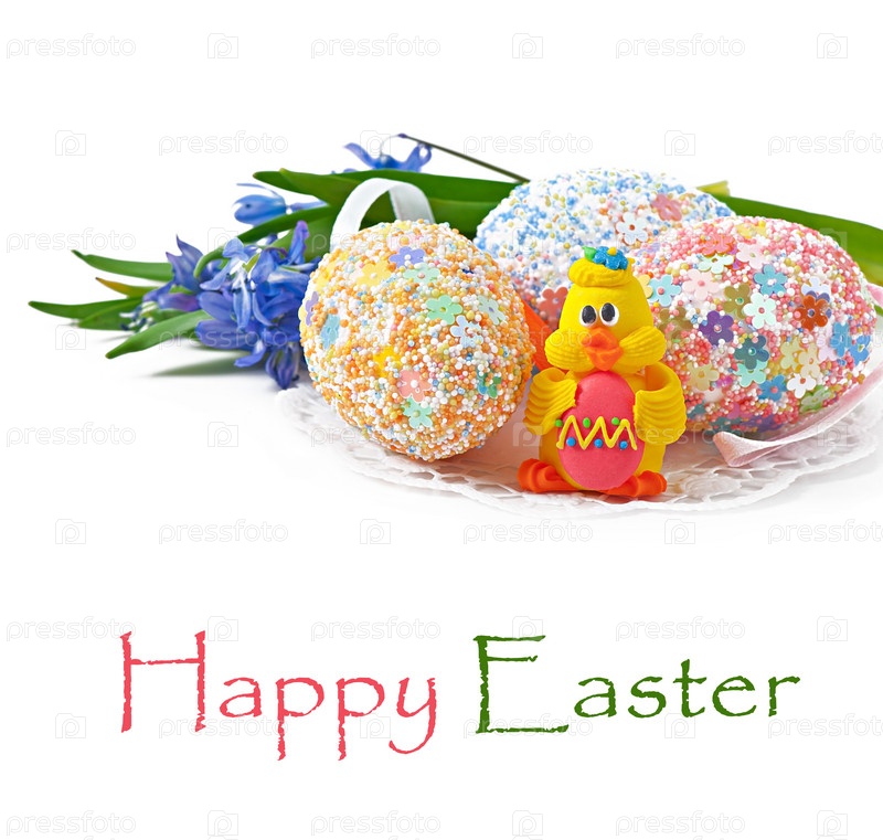 Красочные пасхальные яйца на белом фоне