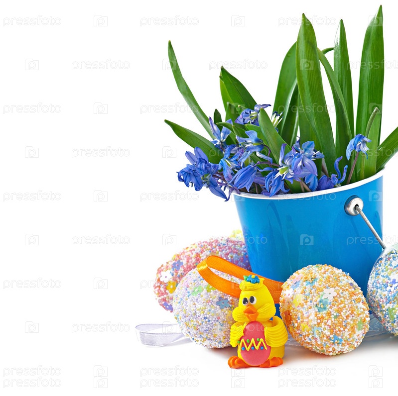 Цветные пасхальные яйца на белом фоне