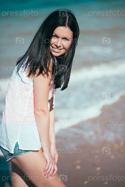 Счастливая женщина на пляже