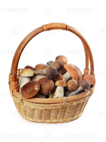 Сырые белые грибы в корзине