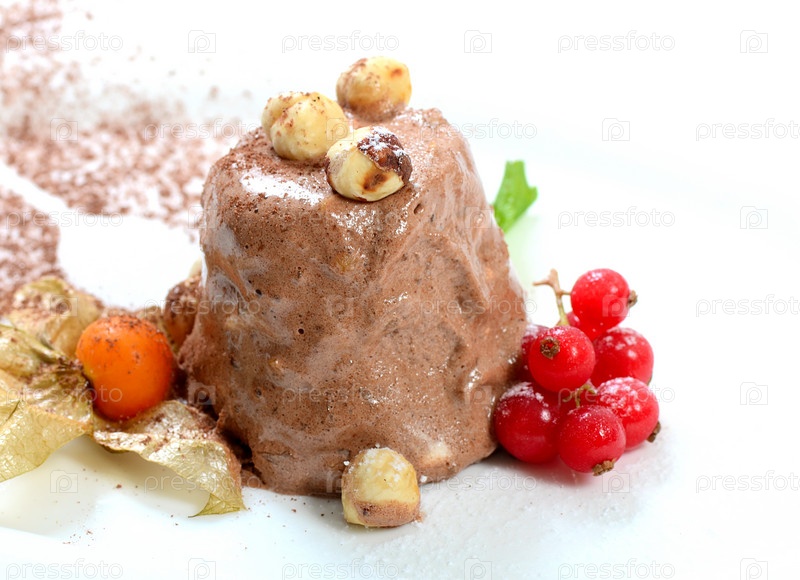 Мороженое с шоколадом и орехами