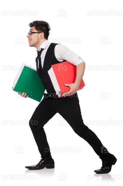Забавный человек с большим количеством папок