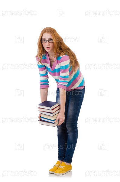Студентка с книгами, изолированная на белом