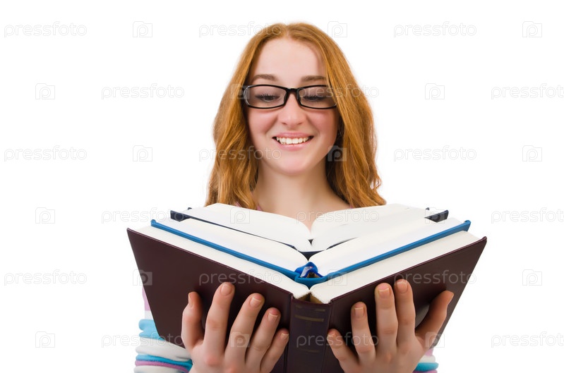 Студентка с книгами, изолированная на белом