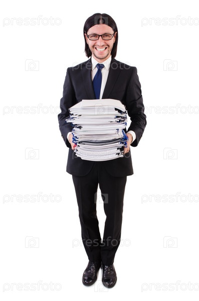 Забавный человек с большим количеством документов