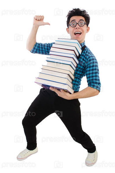 Смешной студент с книгами