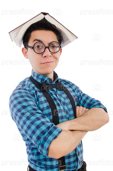 Смешной студент с книгами