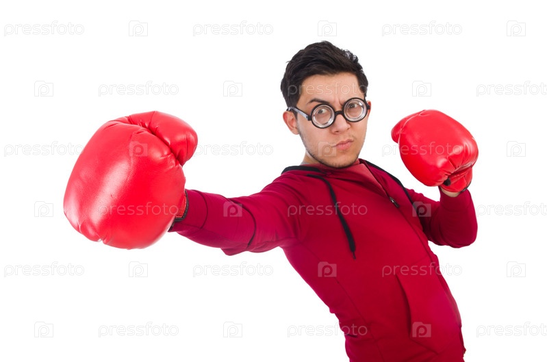 Смешной боксер, изолированный на белом фоне