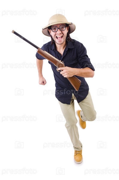 Смешной охотник в шляпе сафари