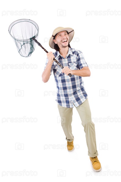Забавный парень с сачком