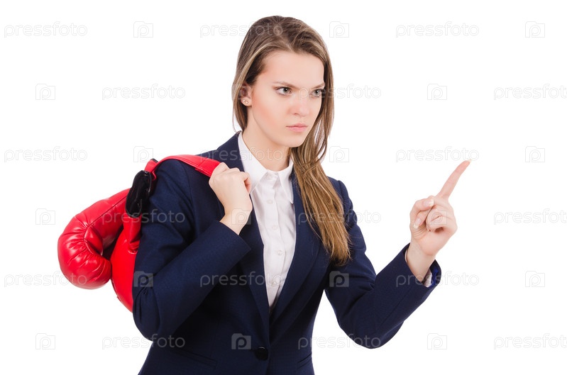 Бизнес-леди с боксерскими перчатками