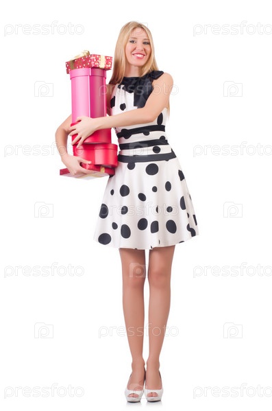 Молодая женщина с рождественскими покупками