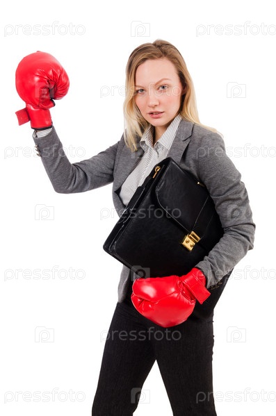 Деловая женщина в боксерских перчатках