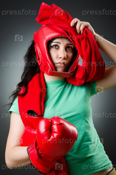 Женщина боксер на белом фоне