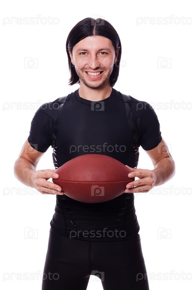 Мужчина с мячом для американского футбола