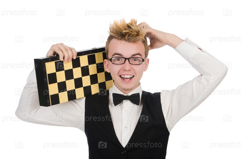 Смешной шахматист, изолированный на белом