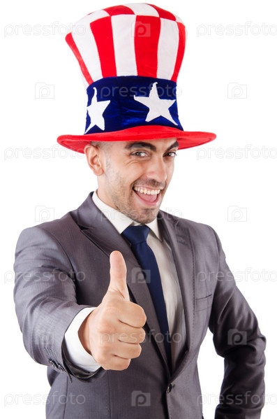 Мужчина в шляпе с американским флагом