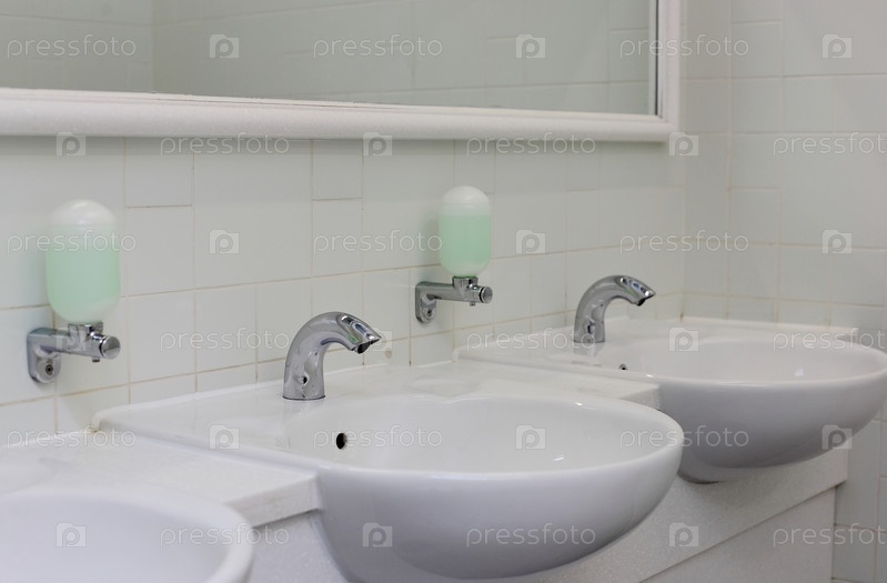 Умывальники и зеркала в общественном туалете