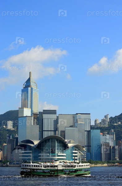 Небоскреб и паром в Гонконге