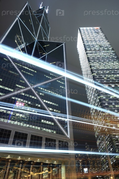 Небоскребы и следы фар автомобилей в Гонконге
