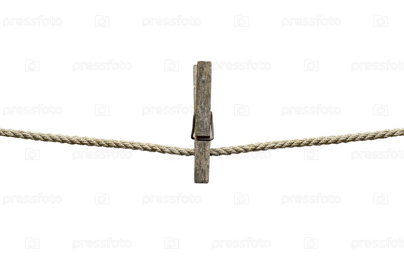 Веревка с прищепками, изолированная на белом фоне