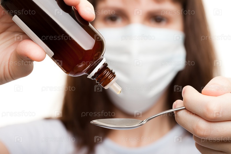 Врач в маске наливает лекарство в ложку