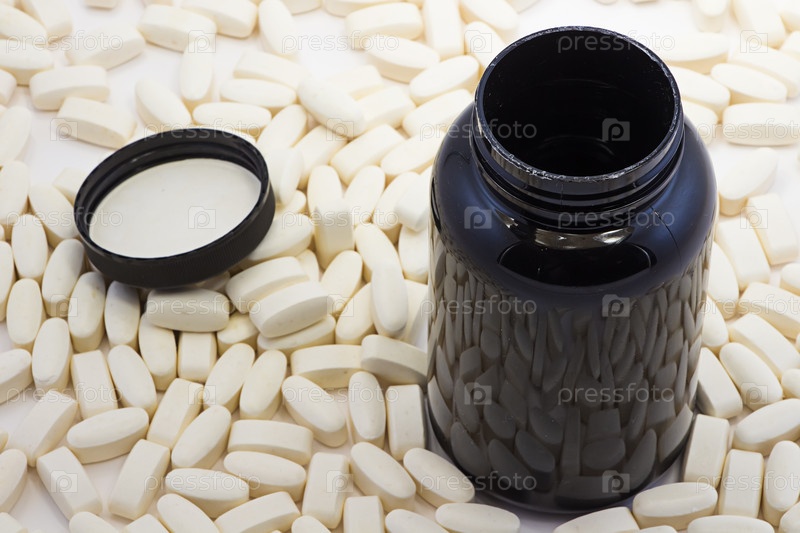 Таблетки возле открытой бутылки