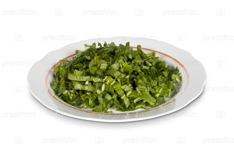 Тарелка зеленого салата на белом фоне