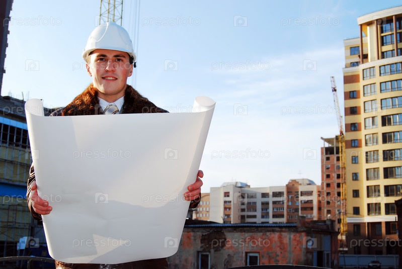 Портрет архитектора с чертежами в руках