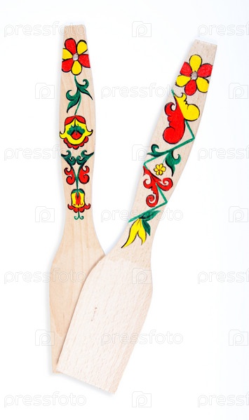 Деревянные лопатки на белом фоне