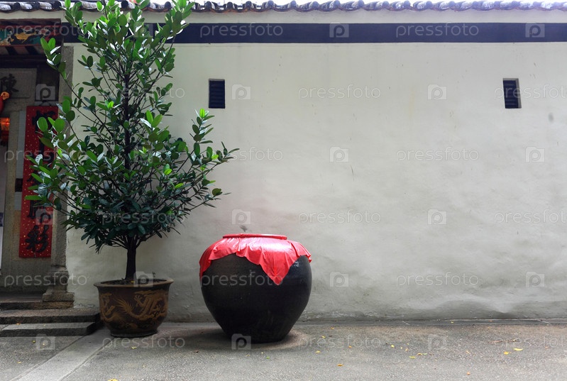 Керамический вазон у белой стены
