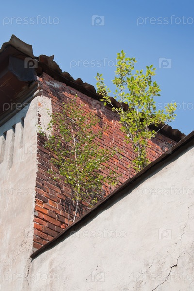 Две деревца, растущие на крыше дома