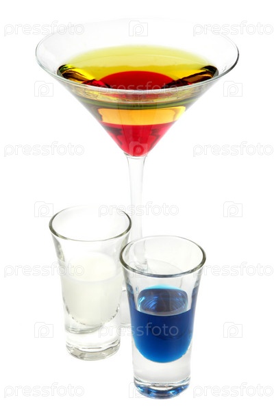 Разные алкогольные коктейли на белом фоне