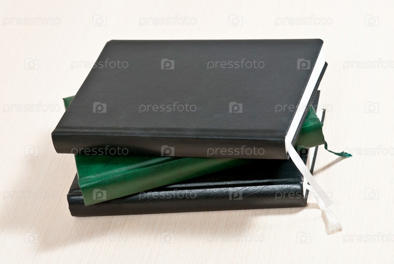 Стопка ежедневников в твердом переплете на белом фоне