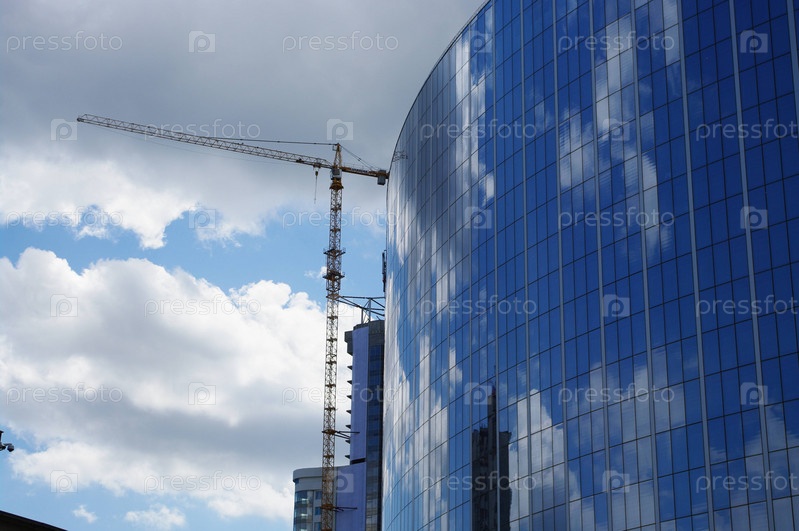 Строительство офисного здания из стекла и бетона