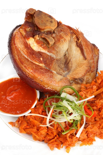 Запеченная свиная рулька с морковью и зеленым луком